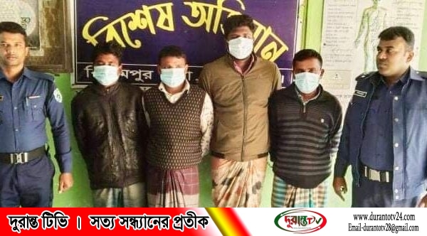 দিনাজপুর বিরামপুরে জুয়া খেলার আপরাধে চার জনকে আটক করেছে বিরামপুর থানা পুলিশ।১৬ ফেব্রুয়ারি-২০২৩ইং রোজ বৃহস্পতিবার রাত ১টার দিকে বিরামপুর পলিপ্রয়াগপুর ইউনিয়নের শ্রীপুর গ্রামের জনৈক তোফাজ্জল হোসেনের ছেলে একরামুল হকের পরিত্যক্ত বসতবাড়ির পূর্ব দুয়ারের ঘরের ভিতর থেকে চার জন জুয়ারিকে আটক করেছে বিরামপুর থানা পুলিশ।আটককৃত আসামিরা হলেন,বিরামপুর শ্রীপুর দক্ষিণপাড়া এলাকার রমজান আলীর ছেলে রাজু আহমেদ (৩২),ইউনুস আলীর ছেলে সোহাগ বাবু(৩২), মোশারফ হোসেনের ছেলে মারুফ হোসেন(৩৮)ও মৃত মিরাজ উদ্দিন মন্ডলের ছেলে আতাউর রহমান (৫০)মামলা সূত্রে জানাযায়,বিরামপুর পলিপ্রয়াগপুর ইউনিয়নের শ্রীপুর গ্রামে তাস দ্বারা টাকার বিনিময়ে জুয়া খেলা অবস্থায়(এক)সেট তাস ও নগদ ৫,৩১০ পাচঁ হাজার তিনশত দশ টাকাসহ চারজনকে হাতে নাতে আটক করেছে বিরামপুর থানা পুলিশ।বিরামপুর থানার অফিসার ইনচার্জ(ওসি)সুমন কুমার মহন্ত জানান,এঘটনায় আটককৃত আসামিদের বিরুদ্ধে থানায় মামলা হয়েছে,এবং আসামিদেরকে বিজ্ঞ আদালতে পাঠানো হয়েছে।