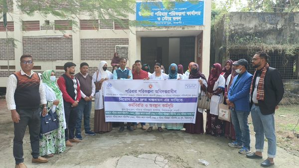 নিয়ামতপুরে পরিবার পরিকল্পনা অধিদপ্তরের কর্মবিরতি ও অবস্থান কর্মসূচি