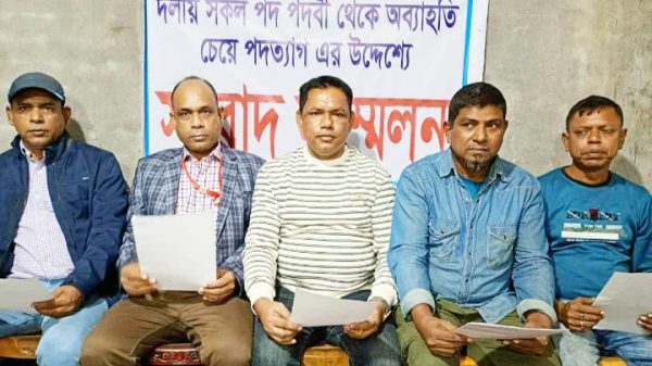 সংবাদ সম্মেলন করে মুকসুদপুরে আওয়ামী লীগের দলের পাঁচ নেতার পদত্যাগ