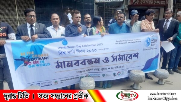 বিশ্ব পানি দিবস ২০২৩ উদযাপন উপলক্ষ্যে বাংলাদেশের দক্ষিণ-পশ্চিম উপকূলীয় অঞ্চলে সুপেয় পানির সংকট নিরসনে সমন্বিত পরিকল্পনা গ্রহণের দাবী জানিয়ে মানববন্ধন ও সমাবেশ করেছে খুলনার বিভিন্ন সংগঠন ও শ্রেণী পেশার মানুষ। ২২মার্চ সকাল ১১টায় খুলনা পিকচার প্যালেস মোড়ে লিডার্স,ওয়াটার কিপার্স বাংলাদেশ, সুন্দরবন ও উপকূল সুরক্ষা আন্দোলন ও খুলনা জেলা জলবায়ু অধিপরার্শ ফোরামের আয়োজনে মানববন্ধন ও সমাবেশে এই দাবী তুলে ধরা হয়।এই দাবীর সাথে সংহতি প্রকাশ করেছেন খুলনার পরিবেশ সুরক্ষা মঞ্চ,হিউম্যানিটিওয়াচ,বেলা, ছায়াবৃক্ষ,গতিসহ অন্যান্য সংগঠন।উক্ত মানববন্ধন ও সমাবেশ প্রথমে ধারনা পত্র পাঠ করেন মেীসুমী রায়,সিডিপির বিভাগীয় সমন্বয়কারী এসএম ইকবাল হোসেন বিপ্লব এর সঞ্চালনায় সভাপতিত্ব করেন জলবায়ু অধিপরামর্শ ফোরামের সহ-সভাপতি ও বেলার খুলনা বিভাগীয় সমন্বয়কারী মাহফুজুর রমান মুকুল,বক্তব্য রাখেন রাজনৈতিক সংগঠক মিজানুর রহমান বাবু,বাপার খুলনা বিভাগীয় সমন্বয়কারী এ্যাড.বাবুল হাওলাদার, ফোরামের নির্বাহী সদস্য ও মাসাস এর নির্বাহী পরিচালক এ্যাড.শামীমা সুলতানা শিলু,পরিবেশ সুরক্ষা মঞ্চ এর সদস্য এ্যাড.জাহাঙ্গীর হোসেন, ফোরামের সদস্য ও ছায়াবৃক্ষ এর নির্বাহী পরিচালক মাহবুব আলম বাদশা,ফোরামের সদস্য ও হিউম্যানিটিওয়াচ এর সাধারণ সম্পাদক শরিফুল ইসলাম সেলিম,লিডার্স এর এ্যাডভোকেসি অফিসার পরিতোষ কুমার বৈদ্য,সিডিপির এস এম এ রহীম, গতির সমন্বয়কারী রেজওয়ান আশরাফ প্রমূখ।বক্তারা বলেন, ভৌগলিক ও মানবসৃষ্ট বিভিন্ন কারনে বাংলাদেশে সুপেয় পানির সংকট অত্যন্ত প্রকট।এই সংকট দক্ষিণ-পশ্চিম উপকুলীয় এলাকায় সবচয়ে বেশী।উপকূলীয় জনগোষ্ঠীর জীবনযাপনের প্রতিটি ক্ষেত্রে পানি সংকটের নেতিবাচক প্রভাব রয়েছে। বাংলাদেশের উপকূলবর্তী ১৯টি জেলায় প্রায় ৩ কোটি ৯০লক্ষ মানুষের বসবাস।আধারযোগ্য পানি সংগ্রহ করতে পারে না এদের প্রায় ৩কোটি মানুষ এবং দেড় কোটি মানুষ ভুগর্ভস্থ লবণাক্ত পানি পানে বাধ্য হচ্ছেন।জনস্বাস্থ্য প্রকৌশল অধিদপ্তরের মতে যেখানে পানযোগ্য প্রতি লিটার পানিতে লবণের সহনীয় পরিমান ০থেকে ১হাজার মিলিগ্রাম সেখানে বাংলাদেশের উপকূলে প্রতিলিটার পানিতে রয়েছে ১ হাজার থেকে ১০হাজার মিলিগ্রাম লবণের উপস্থিতি।মানববন্ধন ও সমাবেশে বক্তারা আরও বলেন,নদীভাঙন জনিত বন্যা,চিংড়ি চাষ,ভুগর্ভস্থ পানির লবনাক্ততার কারনে গত কয়েক বছরে সুন্দরবন এলাকায় সুপেয় পানির সংকট বেড়েছে। সুন্দরবন উপকুলে ৭৩% পরিবার সুপেয় পানি থেকে বঞ্চিত বা খারাপ পানি খেতে বাধ্য হয়।জীবিকা দুর্বলতা সূচক এবং পানি সপদ সূচকে সবচেয়ে উপরে রয়েছে সাতক্ষীরার শ্যামনগর উপজেলা।উপকূলীয় অঞ্চলে গত ৩৫ বছরে ল