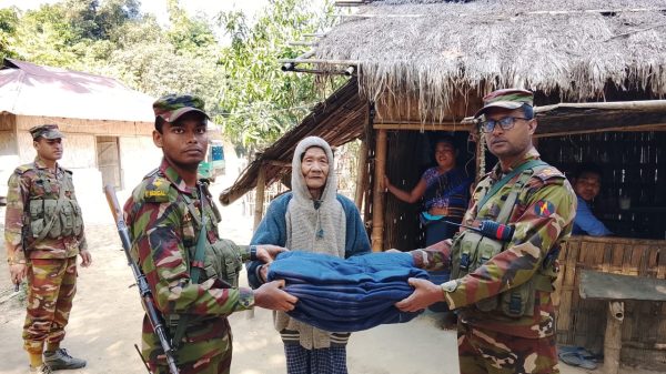 পানছড়ির দুর্গম এলাকায় সেনাবাহিনীর শীতবস্ত্র বিতরণ